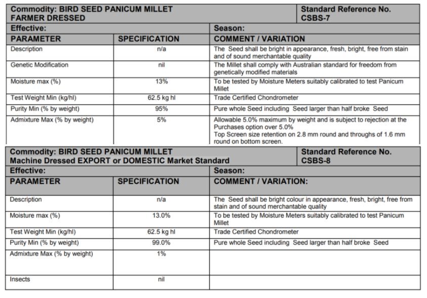 99% Inert / Foreign Material ≤ 1% including: Other seeds ≤ 0.2% Soil/stone ≤ 0.1% Splits ≤ 1%